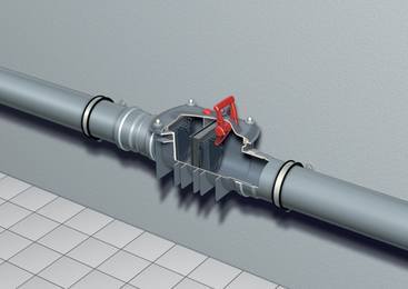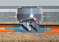 Der ACO Rückstauverschluss TRIPLEX-K-2 Typ 2 entspricht der DIN EN 13564. Dieses Produkt ist speziell für den Einbau in die Bodenplatte konzipiert. Der Rückstauverschluss kann mit einem Abdichtungsflansch gegen drückendes Wasser aufgerüstet werden. Der ACO TRIPLEX-K-2 ist für den Einsatz bei fäkalienfreiem Abwasser bestimmt. Es dürfen ausschließlich Entwässerungsgegenstände mit fäkalienfreiem Abwasser angeschlossen werden, wie z. B. Bodenabläufe, Duschen oder Waschmaschinen, die sich unterhalb der Rückstauebene befinden. Im normalen Betriebszustand pendeln beide Klappen. Wenn Abwasser abgeleitet wird, öffnen sich die Klappen durch den Wasserdruck und die Flüssigkeit kann in den Kanal abgeleitet werden. Im Rückstaufall drückt das Abwasser vom Kanal in die Rohrleitung. Die hintere Klappe wird dabei gegen den Dichtsitz gedrückt und verhindert ein Eindringen des Abwassers in das Gebäude. Die zweite Klappe dient zur Sicherheit, um bei eventuellen Verschmutzungen der hinteren Klappe die Dichtfunktion zu übernehmen.
